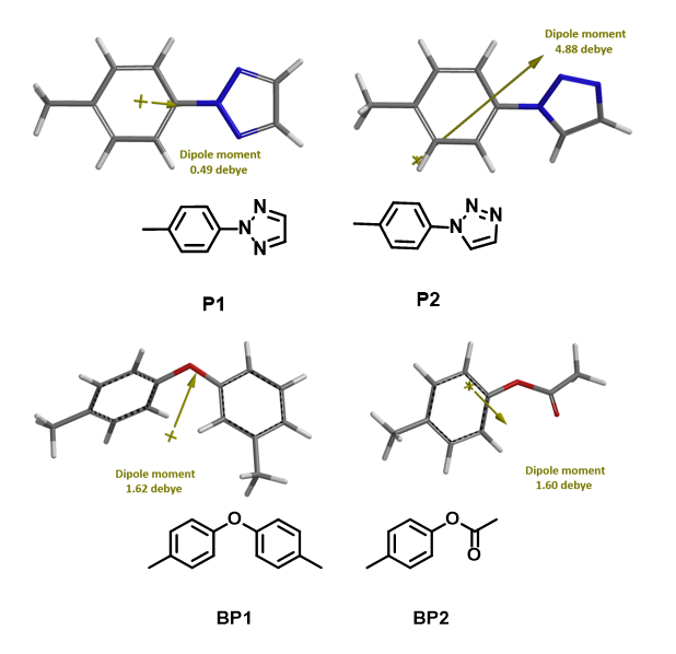 Figure 6. Dipole moment calculated for P1, P2, BP1, BP2.