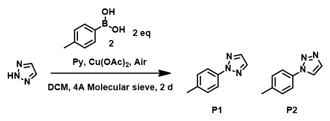 Figure 7. Chan-Lam reaction of 1,2,3-triazole and p-tolylboronic acid.