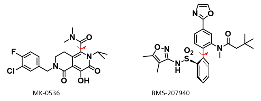Atropisomers could have different conversion rates in different environments. Atropisomers of HIV-1 integrase inhibitor MK-0536 [5] and endothelin type A antagonist BMS-207940 [6] have been reported to have accelerated interconversion in plasma/serum (Figure 5).